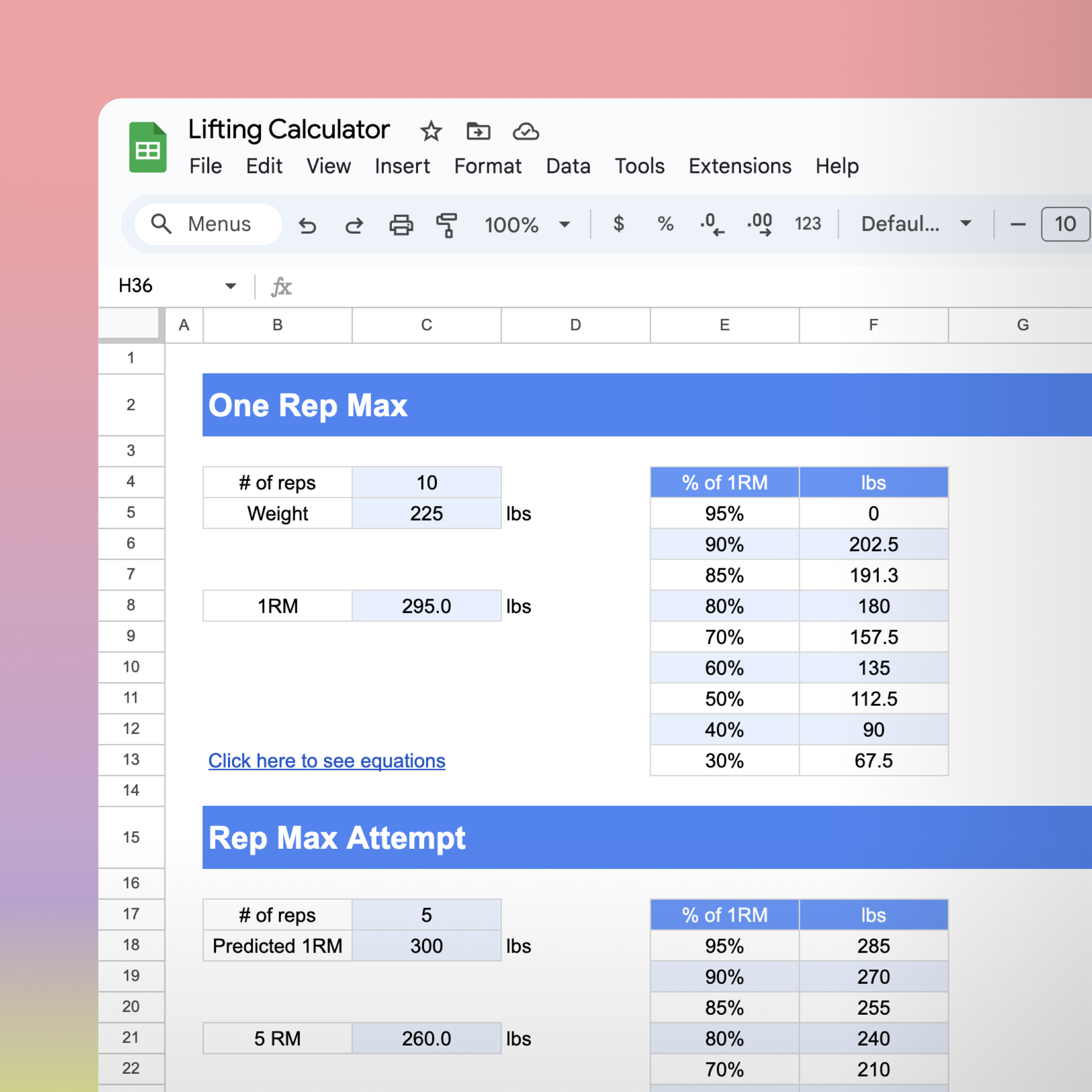 Calculate 1RMs, rep-max attempts, and target reps…