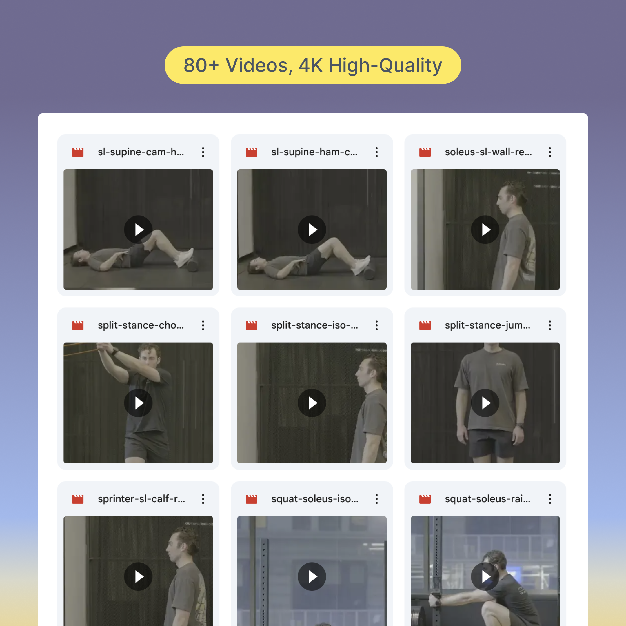 Exercise library with 80+ physical therapy and rehab movements – shot in 4K, high-quality video!